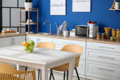 Zdjęcie "Wnętrze stylowej nowoczesnej kuchni" może być wykorzystywane do celów osobistych i komercyjnych zgodnie z warunkami zakupionej licencji Royalty-free. Obraz jest dostępny do pobrania w jakości wysokiej rozdzielczości do 5760x3840.