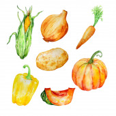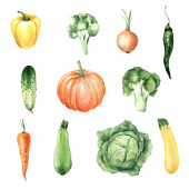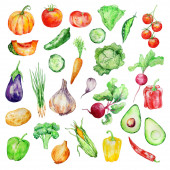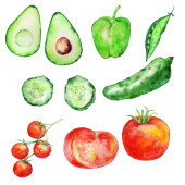 akwarela zestaw warzywa zielony czerwony soczyste jasne na białym tle