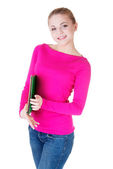 Młoda dama dorywczo studentów pokazujesz gestem ok.