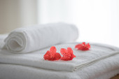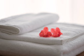 Trzy żółte kwiaty na składanych ręcznikach i podświetleniu