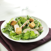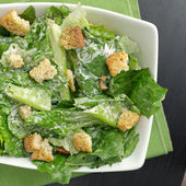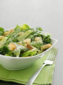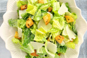 Sałatka ze świeżego cezara z grzankami i serem parmezanowym w misce