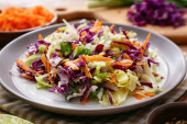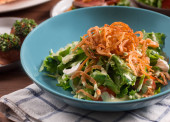 chrupiąca meksykańska sałatka z wielobarwnymi paskami tortilla