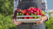 Zdjęcie "Kobieta trzyma kosz świeżych liści sałaty wyrwanych z łóżka." może być wykorzystywane do celów osobistych i komercyjnych zgodnie z warunkami zakupionej licencji Royalty-free. Obraz jest dostępny do pobrania w jakości wysokiej rozdzielczości do 5760x3840.