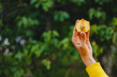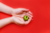 Zdjęcie "Małe jabłko w dłoni przeciwko rozmazanej zieleni" może być wykorzystywane do celów osobistych i komercyjnych zgodnie z warunkami zakupionej licencji Royalty-free. Obraz jest dostępny do pobrania w jakości wysokiej rozdzielczości do 5760x3840.