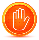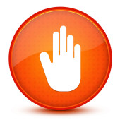 Ręczna ikona odizolowana na błyszczącej gwiazdy pomarańczowy okrągły przycisk abstrakcyjny ilustracja