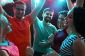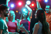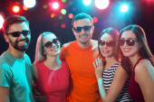 Szczęśliwi młodzi ludzie pokazujący znak OK w klubie nocnym