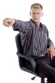 Mężczyzna w garniturze biznesowym siedzi na krześle