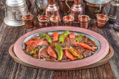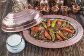 Zdjęcie "Iskender, przetłumaczone jako Alexander (Wielki) Kebab jest znany ultra wysokiej kalorii smakoszy tureckie danie Bursa wykonane z wysokiej jakości wołowiny i zazwyczaj cieszył się z jogurtu i stopionego masła." może być wykorzystywane do celów osobistych i komercyjnych zgodnie z warunkami zakupionej licencji Royalty-free. Obraz jest dostępny do pobrania w jakości wysokiej rozdzielczości do 5760x3840.