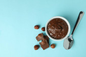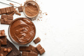 Miska z kawałkami czekolady i czekolady na białym tle
