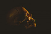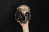 widok z góry okultystycznej czaszki voodoo na czarny