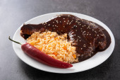 Tradycyjny pieprzyk Poblano z płytą ryżową zbliżyć