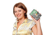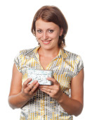 uśmiechnięte dziewczyny wygląda na prezent przez szkło powiększające