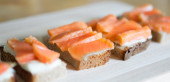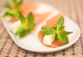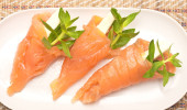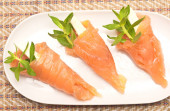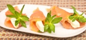 zbliżenie strzał przystawki z czerwonych ryb i tymianku