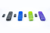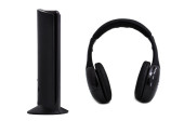 dwa kompaktowe czarne słuchawki próżniowe latające nad pojemnikiem
