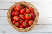 Zdjęcie "Różne świeże dojrzałe pomidory i bazylia w koszyku. Koncepcja zdrowej żywności. Czyste jedzenie" może być wykorzystywane do celów osobistych i komercyjnych zgodnie z warunkami zakupionej licencji Royalty-free. Obraz jest dostępny do pobrania w jakości wysokiej rozdzielczości do 5760x3840.