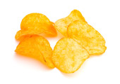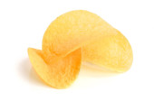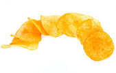 smaczne chipsy ziemniaczane na białym tle, widok z bliska