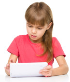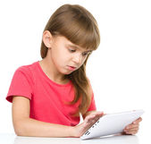 młoda dziewczyna jest za pomocą tabletu