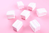Zdjęcie "Pianki na niebieskim tle.Płaskie leżaki lub widok z góry. Miejsce na tekst." może być wykorzystywane do celów osobistych i komercyjnych zgodnie z warunkami zakupionej licencji Royalty-free. Obraz jest dostępny do pobrania w jakości wysokiej rozdzielczości do 5760x3840.