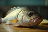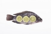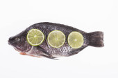 Świeżo złowiona, gęsta ryba mulletowa, z limonkami w plasterkach