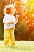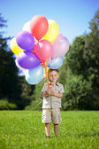 Mała dziewczynka gospodarstwa kolorowe balony. dziecko grając na zieloną