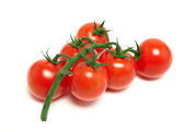 Banda pomidorów. Widok z góry świeżych pomidorów, całe i pół krojone, izolowane na białym tle
