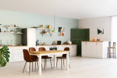 Stylowe wnętrza nowoczesnej kuchni ze stołem jadalnym