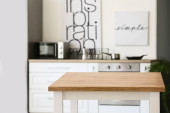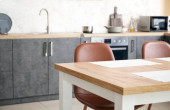 Zdjęcie "Pusty stół w nowoczesnej kuchni" może być wykorzystywane do celów osobistych i komercyjnych zgodnie z warunkami zakupionej licencji Royalty-free. Obraz jest dostępny do pobrania w jakości wysokiej rozdzielczości do 5760x3840.