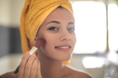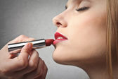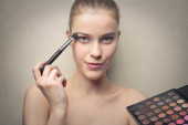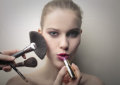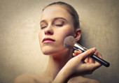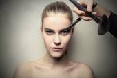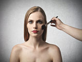 kobieta wprowadzenie niektórych makijaż na piękną kobietą