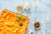 Zdjęcie "Smaczny makaron pieczony w naczyniu na szarym tle" może być wykorzystywane do celów osobistych i komercyjnych zgodnie z warunkami zakupionej licencji Royalty-free. Obraz jest dostępny do pobrania w jakości wysokiej rozdzielczości do 5760x3840.