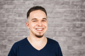 sport młody brodaty mężczyzna z nowoczesną modną fryzurą blaknięcie dla fryzjer, strona.
