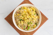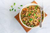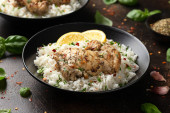 Zdjęcie "Jeden ryż z kurczaka pot na białym talerzu z cytryną i świeże zioło na białym tle zdjęcie poziome" może być wykorzystywane do celów osobistych i komercyjnych zgodnie z warunkami zakupionej licencji Royalty-free. Obraz jest dostępny do pobrania w jakości wysokiej rozdzielczości do 5760x3840.