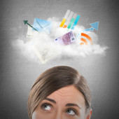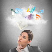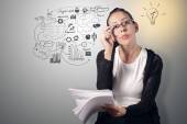 młody biznes kobieta myśli o jej plany portret twarz zbliżenie