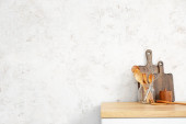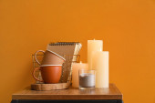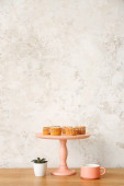 Stojak na deser z ciastkami i filiżanką na blacie kuchennym