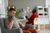 Mężczyzna korzystający z telefonu komórkowego w domu