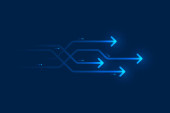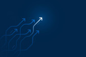 Zdjęcie "Światło obwód strzałki na niebieskim tle ilustracji, cyfrowy wzrost koncepcja." może być wykorzystywane do celów osobistych i komercyjnych zgodnie z warunkami zakupionej licencji Royalty-free. Obraz jest dostępny do pobrania w jakości wysokiej rozdzielczości do 5760x3840.