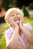 pewność. pewnie kobieta modny starszy emeryt z skrzyżowanymi rękami