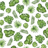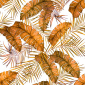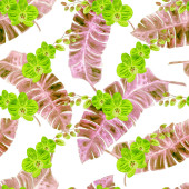 Hawajski bezszwowy monochromatyczny wzór z akwarelowymi tropikalnymi liśćmi i kwiatami. Egzotyczne kwiaty storczyków. Tropikalny letni druk kwiatowy.