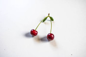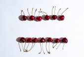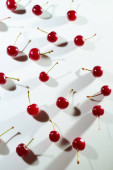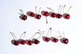 wiśnia na białym tle z cieniami. Zbliżenie. Widok góry. Wysokiej jakości zdjęcie