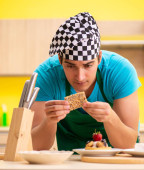 młody profesjonalny kucharz przygotowanie sałatki w kuchni