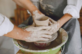 Młoda kobieta robi naczynia w ceramice