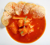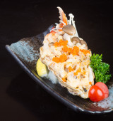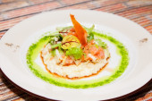 Sałatka szynkowa z kurczakiem, grzybami i pomidorami, placek ziemniaczany w białym sosie