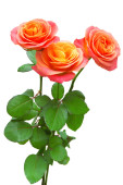 Pomarańczowy kwiat róży na białym tle. Karta ślubna, Panna młoda. Powitanie. Letnich. Wiosna. Płaski lay, widok z góry. Miłość. Walentynki