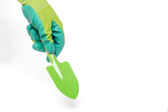 różne plastikowe butelki z chemikaliami do mycia domu na białym tle. Miejsce na tekst. spray z zielonym sprayem, rękawiczki i szmata