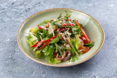 Zdjęcie "sałatka grecka z serem w talerzu na szarym tle" może być wykorzystywane do celów osobistych i komercyjnych zgodnie z warunkami zakupionej licencji Royalty-free. Obraz jest dostępny do pobrania w jakości wysokiej rozdzielczości do 5760x3840.