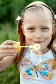 atrakcyjny portret uśmiechający się mała dziewczynka, rzucanie pozostawia