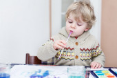toddler biały chłopiec zabawy kryty, obraz z różnych