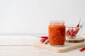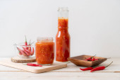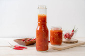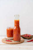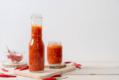 chili lub sos chili w butelce i słoiku na wwod tle