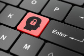 pojęcie informacji: głowa z dziurka na tle klawiatury komputera