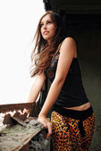 Młoda nowoczesna dziewczyna w mieście, życie studenckie, prosta dziewczyna na zewnątrz portret