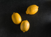 Jasnożółte cytryny na czarnym tle ułożone w kształcie kwiatu. Owoce cytrusowe pełne witamin i składników odżywczych